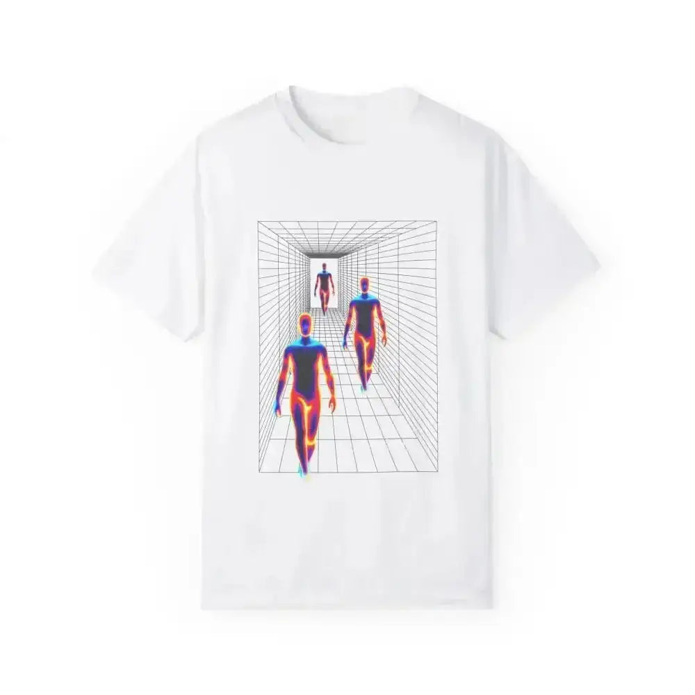 Futuristic Wireframe Corridor Garment-Dyed Tee Brings Sci-Fi to Life