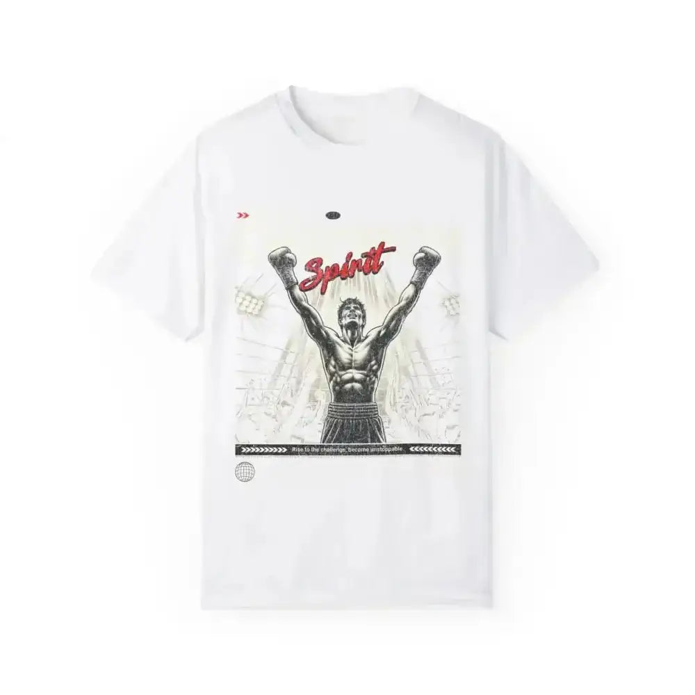 Introducing the Knockout Style Rocky Balboa Graphic Fighter Tees by Free Spirit Chic. These premium T-shirts feature a bold and iconic Rocky Balboa graphic, perfect for fans of the legendary fighter. Available in Black, White, Granite, Graphite, Grey, and Pepper colors, and sizes ranging from S to 4XL. Made from high-quality materials, these tees offer both style and comfort. Stand out from the crowd and show off your fighting spirit with the Knockout Style Rocky Balboa Graphic Fighter Tees.